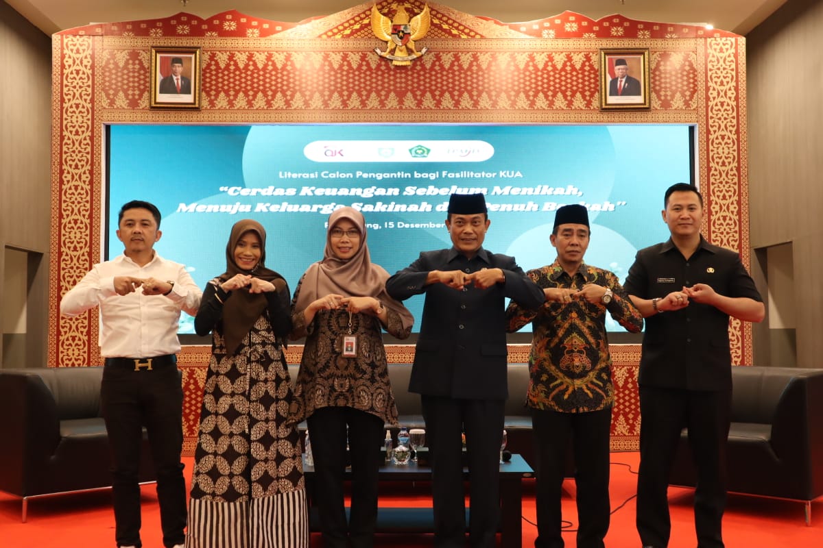 Palembang, 15 Desember 2022. Dalam rangka meningkatkan literasi dan inklusi keuangan bagi Konsumen dan masyarakat khususnya segmen generasi milenial sekaligus pelaksanaan salah satu program kerja Tim Percepatan Akses Keuangan Daerah (TPAKD) Provinsi Sumatera Selatan, telah dilaksanakan kegiatan Literasi Calon Pengantin bagi Fasilitator KUA: “Cerdas Keuangan Sebelum Menikah, Menuju Keluarga Sakinah dan Penuh Berkah” di Ballrom OJK Kantor Regional 7 Sumatera Bagian Selatan.